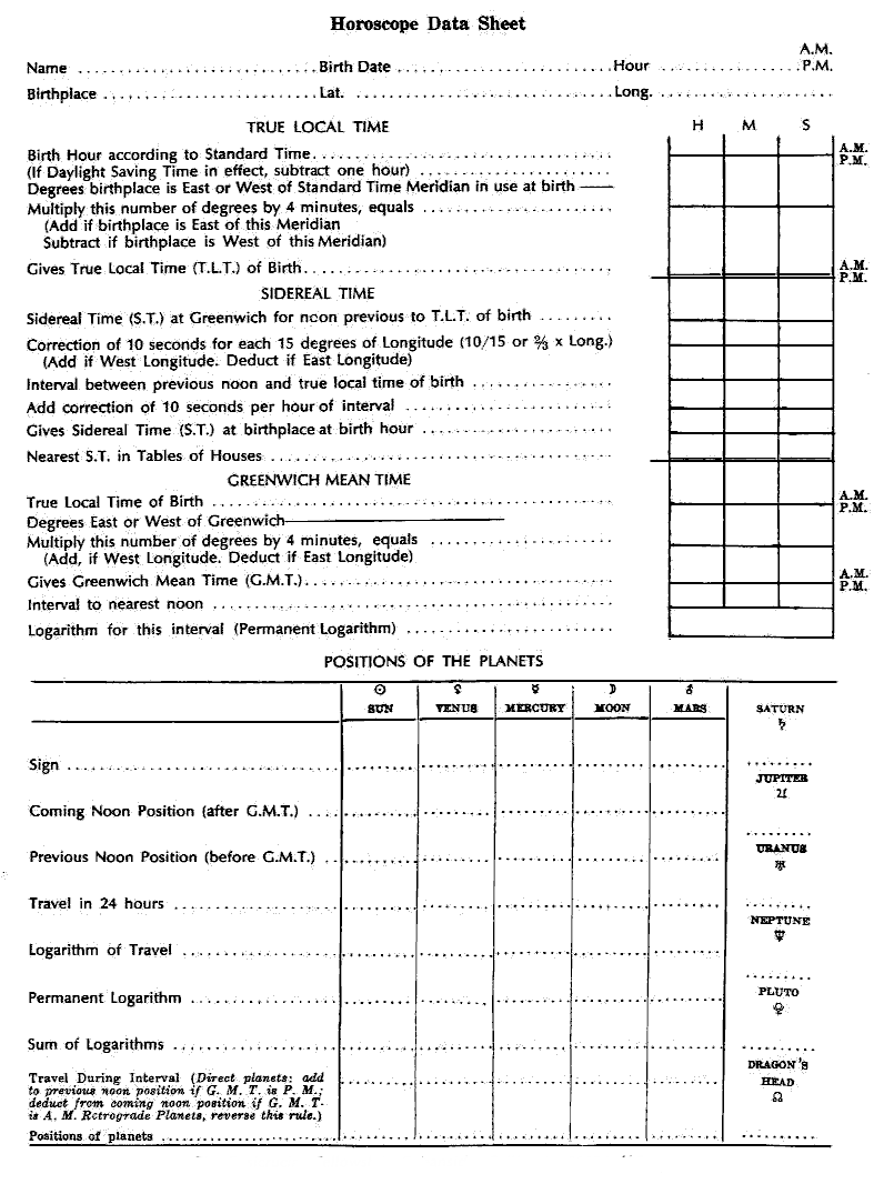 Following the above method we find the following aspects in addition to the ones noted above: Mercury square Jupiter; Mercury square Saturn.
