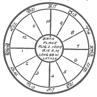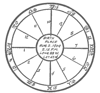 The horoscope has now been cast and is complete. Most astrologers now start to read, but to do this work thoroughly it is necessary to make an index such as will be found in a later chapter. In order to make the student thoroughly conversant with the manner of casting a horoscope we will first complete the figure cast in part for Aug. 2, 8:15 P.M., for that horoscope offers certain peculiarities worthy of illustration.