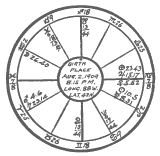 We have now cast the two horoscopes and a comparison reveals the fact that although cast for persons born in the same city on the same day of the year, the characteristics of one of these persons will be entirely opposite to those of the other, and as character is the determinator of destiny, the lives of these two persons will be entirely opposite.