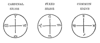 Gemini, Sagittarius and Pisces. So called because in the pictorial Zodiac Gemini is represented as a pair of twins, Sagittarius as a Centaur, part man and part horse, and Pisces as two fishes. They are of a dual, acillating nature, and it is remarkable that events in the lives of people having these signs prominent are repeated. They marry several times, their misfortunes never come singly, but their good fortunes also come in multiple.
