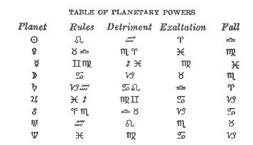 The table shows the rulership of the planets over the various signs and a study thereof will bring out the underlying system and philosophy.
