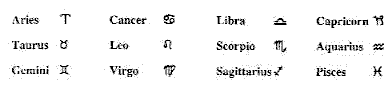 6. The twelve signs of the zodiac and their symbols are: