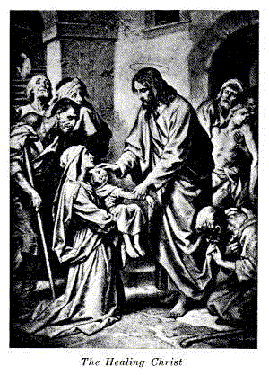 But faith without works is dead, and in every case where Christ healed anyone, this person had to do something; he had to cooperate actively with the great Healer before his cure could be accomplished. He said, "Stretch forth thy hand," and when the man did so the hand was healed; to another, "Take up thy bed and walk," and when he did so the malady disappeared; to the blind, "Go and bathe in the pool of Siloam"; to the leper, "Show thyself to the priest, offer your gifts," etc. In every case there was active cooperation upon the part of the one to be healed, which helped the Healer. They were simple requirements, but such as they were they had to be complied with, so that the spirit of obedience could aid the Healer's work. When Naaman came to Elijah and thought that this prophet was going to come out with a great show of magic and ceremony to dispel the leprous spots from his body he was domed to disappointment. And when the prophet sent word to him, "Go and wash seven times in the river Jordan," he was enraged to the point of crying out, "Have we not great rivers in Assyria and why should I go and wash in the Jordan? What nonsense!" He lacked the spirit of submission which is absolutely necessary in order that the work may be done, and it is safe to say that had he persisted he would not have received the healing of his malady. Neither would any of those who were healed by his malady. Neither would any of those who were healed by the Christ have been affected unless they had obeyed and had done as they were bidden. This is a law of Nature that is absolutely sure. It is disobedience that brings disease. Obedience, no matter whether that involves washing in the Jordan or stretching forth a hand, shows a change of mind, and the man is therefore in a position to receive the healing balm which may come through the Christ, or through a healer of one kind or another as the case may be. Primarily, in all cases, the healing force comes our Heavenly Father, Who is the Great Physician.