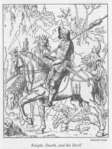 I think as I write this of Durer's wonderful drawing of the Knight, Death, and the Devil: the Knight of the Spirit on his strong and well kept horse- human nature, treated as it ought to be, and used as it ought to be-riding up a dark rocky defile. Beside him travels Death, a horrible, doddering figure of decay, saying, "All things perish — time is passing — we are all getting older-is this effort really worth while?" On his flank is a yet more hideous fellow-pilgrim: the ugly, perverse, violent element of our mixed human nature, all our animal part, our evil impulses, nagging at him too.